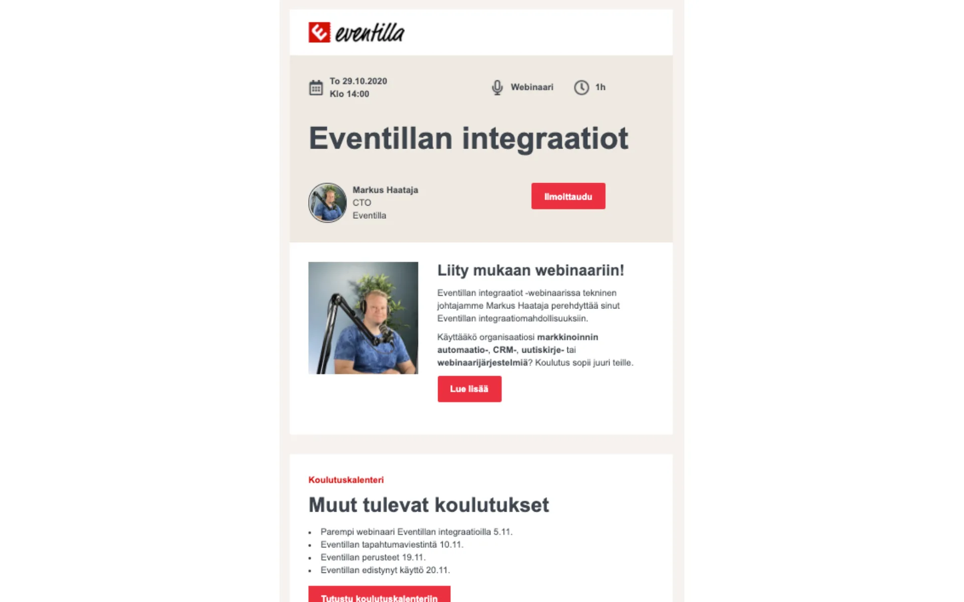 Eventillan esimerkkikutsu koulutuswebinaariin