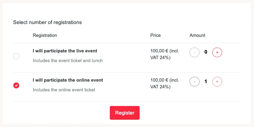 Note this! Would you like to allow the participants to edit their participation data after the registration? With Eventilla’s registration process you can allow the registrants to do it themselves, so you don’t need to carry the extra work.