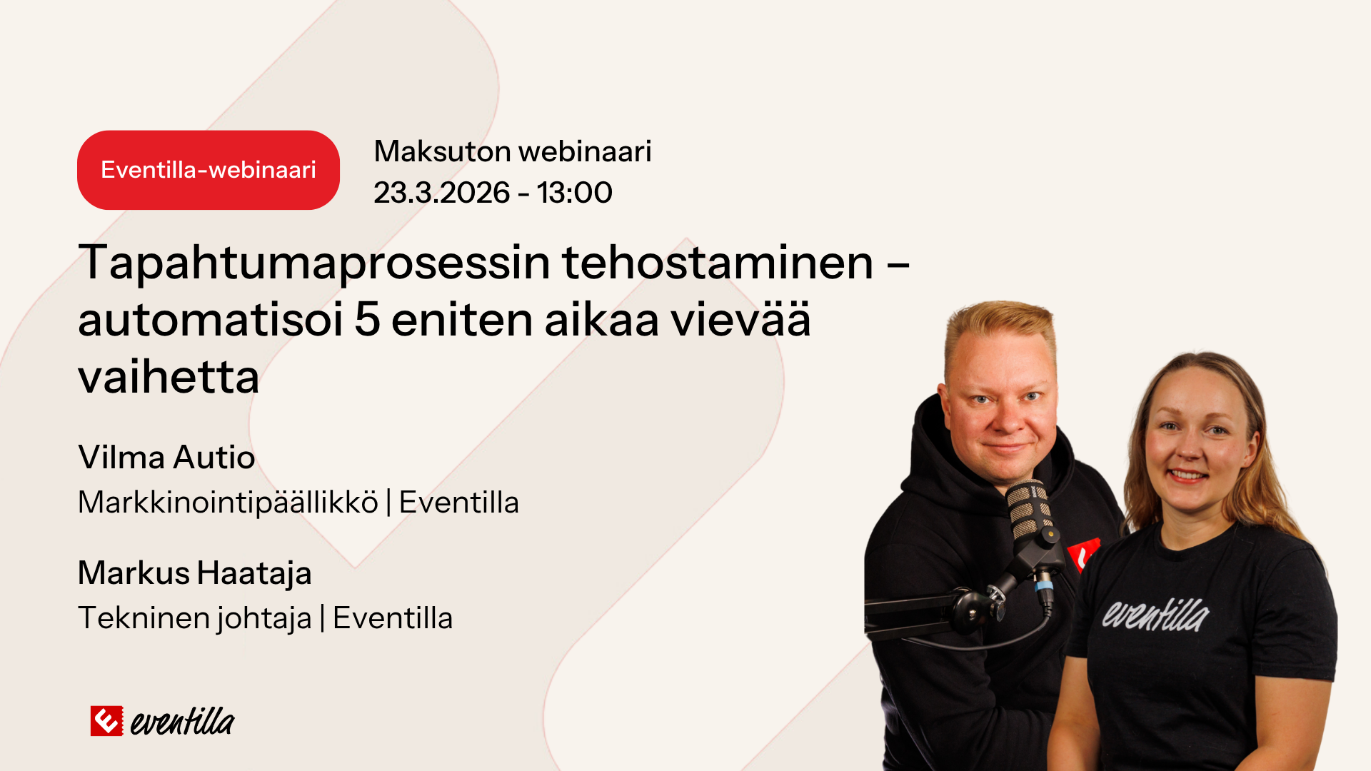 Maaliskuussa 2025 järjestetyssä ”Kaikki tapahtumista(ni): Tapahtumajärjestäjän parhaat vinkit” -webinaarissa pureuduttiin tapahtumien järjestämiseen ja onnistuneen tapahtuman keskeisiin elementteihin. Webinaarin asiantuntijavieraana toimi Jesse Koivurova Epic Eventsiltä, jolla on yli kymmenen vuoden kokemus tapahtumien järjestämisestä.