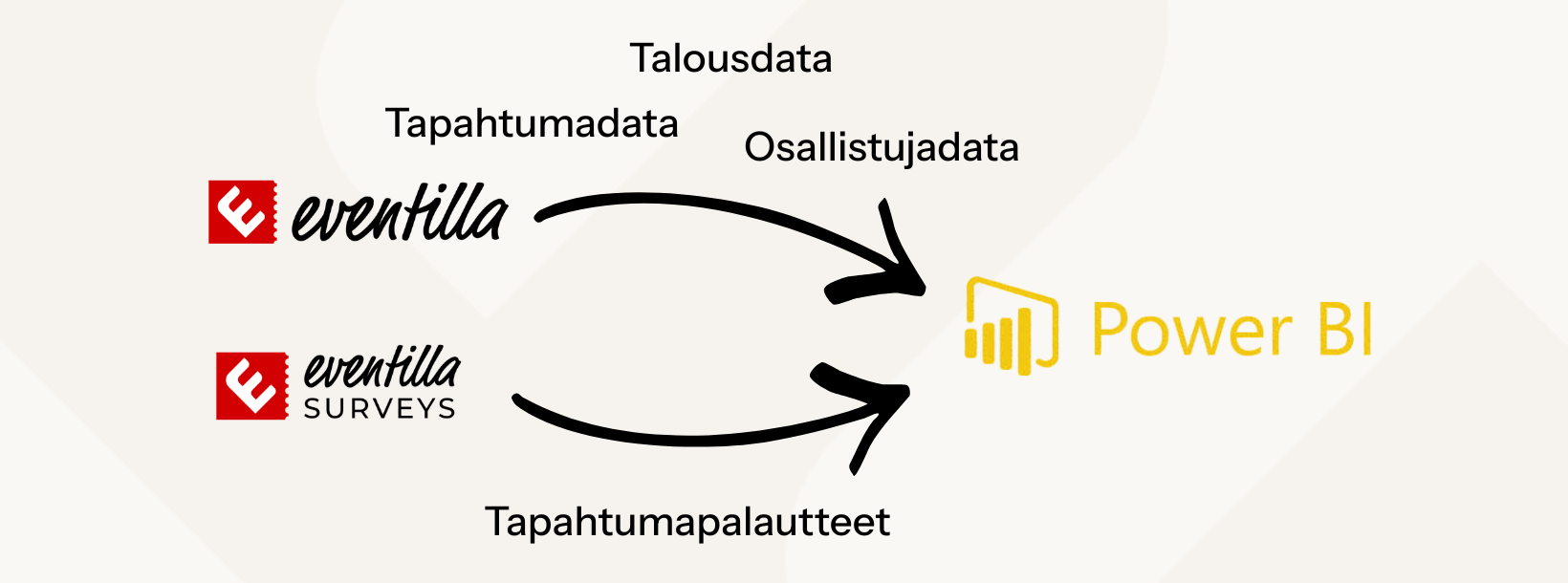 Luo brändätty tapahtumakalenteri ja tapahtumasivu Eventilla-tapahtumanhallinnalla. Osallistuja ilmoittautuu tai ostaa lipun tapahtumaan, ja lomakkeelle täytetyt tiedot tallentuvat Eventillaan. Integraation avulla valitut tapahtuma-, osallistuja- ja talouskentät siirtyvät Power BI:hin, jossa rakennat ajantasaiset raportit ja dashboardit eri tiimeille. Eventilla tarjoaa tietokantayhteyden sekä Power BI Cloudin että Desktopin käyttäjille.