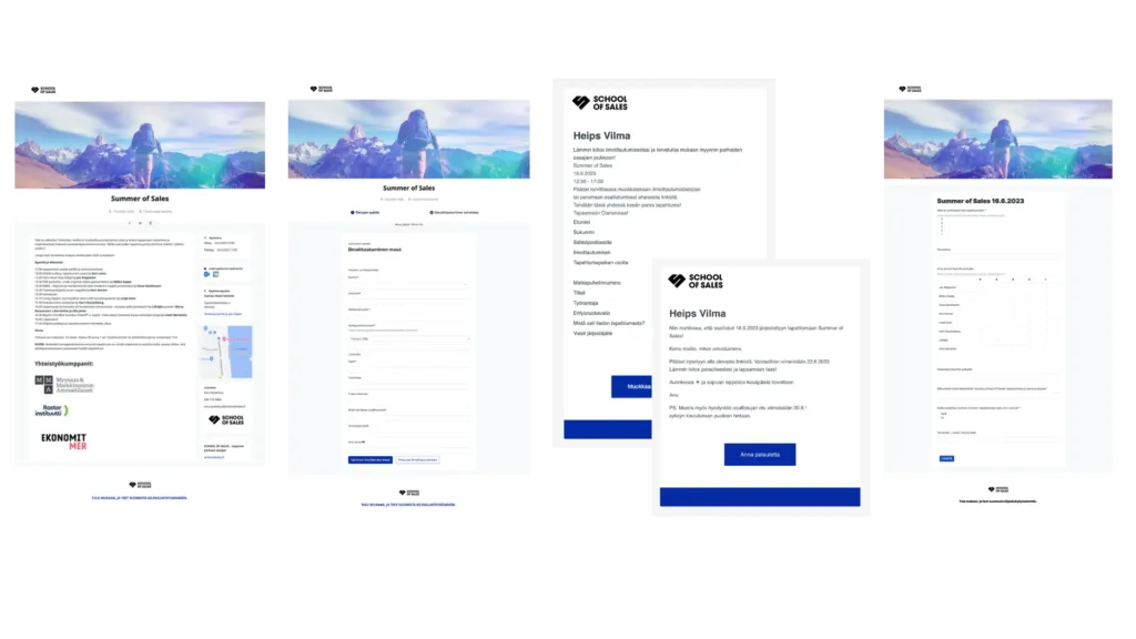 Tapahtuman ilmoittautumisprosessi oli yksinkertainen ja tehokas – ilmaiseen tapahtumaan otettiin ilmoittautumisia vastaan Eventillassa ja ajastettu viestintä muistutteli ja nosti fiilistä tasaisesti ennen tapahtumapäivää. Oman osallistumisensa pääsi itse perumaan – järjestäjän sähköposti ei siis täyttynyt kyselyistä osallistumisen peruutuksiin liittyen. Summer of Salesissa oli myös käytössä no-show maksu, jotta tarjoiluja ei menisi hukkaan ja jokainen halukas pääsisi osallistumaan supersuosittuun tapahtumaan. Tapahtumaan oli myös asetettu Eventillassa jonotuslista, jotta peruutusten vuoksi vapautuvia paikkoja saatiin automatisoidusti tarjottua aina jonossa seuraavalle.